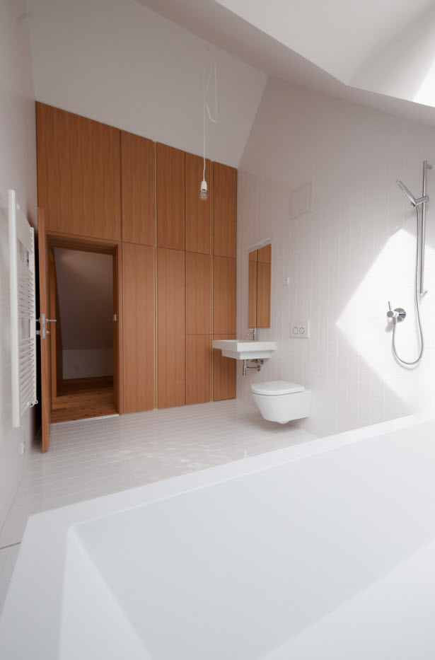 En el segundo nivel las escaleras llevan directo hacia el dormitorio principal (7), convirtiéndose una parte en pasillo para acceder hacia el dormitorio secundario (9), el cuarto de baño se encuentra en el centro para ser compartido; la casa puede adaptarse a una familia hasta de cuatro integrantes.