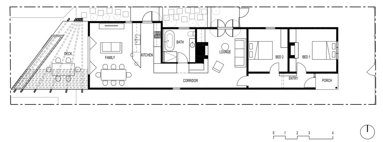 Esta pequeña casa de dos dormitorios ha sido construida en un terreno largo y angosto, se ha hecho una interesante remodelación con una fachada moderna por un lado y por otro mantiene el tradicional estilo presente en el vecindario; el interior se plantean espacios modernos, amplios y una terraza con cubierta virtual que permita maximizar el ingreso de luz y viento, a continuación descubre el diseño de FMD Architects que seguramente te va a inspirar.